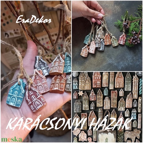 Rusztikus festett házikók karácsonyfadíszek 10 db/szett