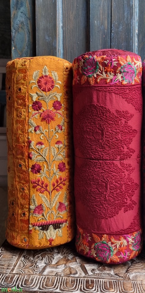 Eljövendő nyarak-Hímzett hengerpárna sárga/burgundivörös/