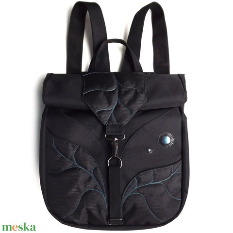 - Anyaga: gyöngyvászon, orkánszövet, heveder, cipzár, cérna, fém karabíner, műbőr, szivacslap, vízlepergető vászon, cordura