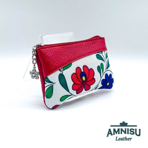 Piros - matyó mintás ívelt egy cipzáras kulcstartó C5017