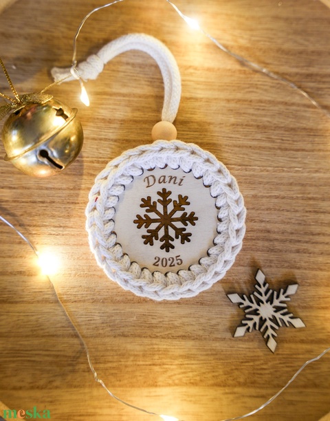 Személyre szabható egyedi névvel feliratozható horgolt karácsonyfadísz