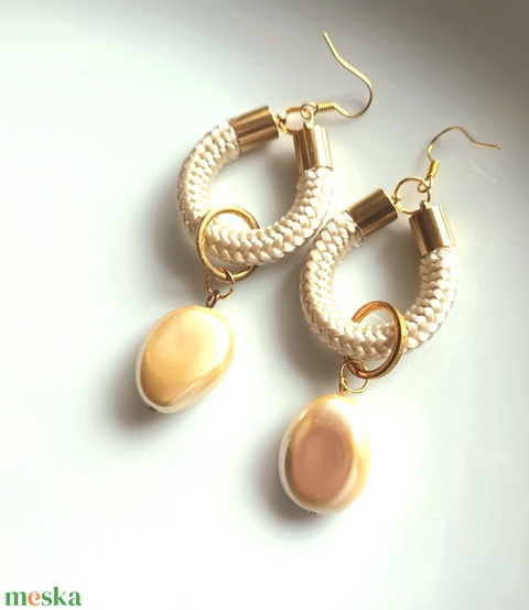 Brilles, beige színű kötél, arany színű üveggyönggyel Design fülbevaló