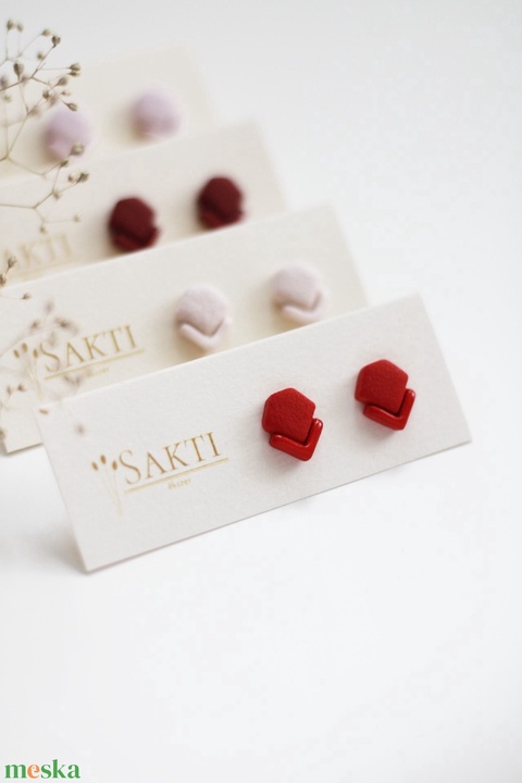 Piros elegáns gomb fülbevaló, gomb fülbevaló