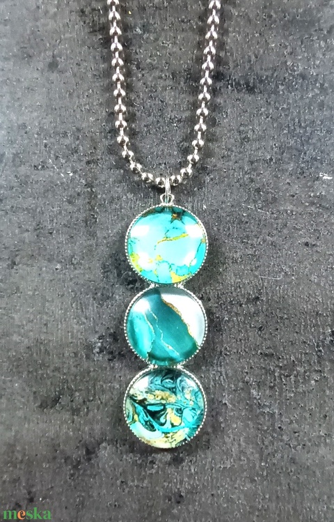 Három köves design medál, golyós láncon - INGYEN POSTA