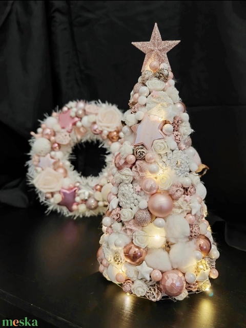 Egyedi karácsonyi rózsaszín-fehér asztali dísz LED világítással