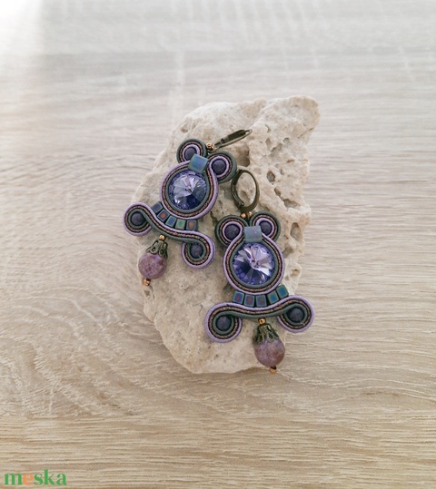 - Anyaga: sújtás zsinór, swarovszki kristály, japán kása, cseh csiszolt gyöngy, ragasztó, cérna, nikkel mentes fémszerelék, cseh kaboson