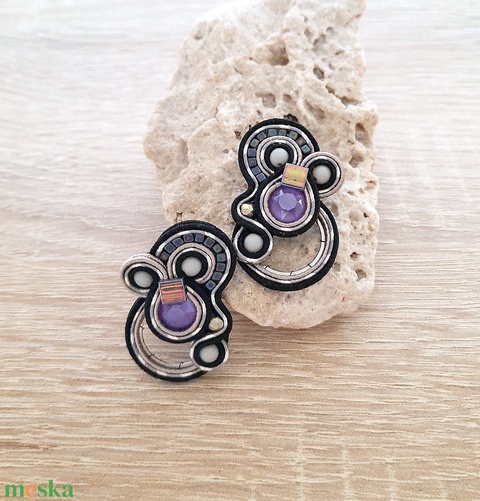 sújtás zsinór, swarovszki kristály, japán kása, cseh csiszolt gyöngy, ragasztó, cérna, nikkel mentes fémszerelék, cseh kaboson