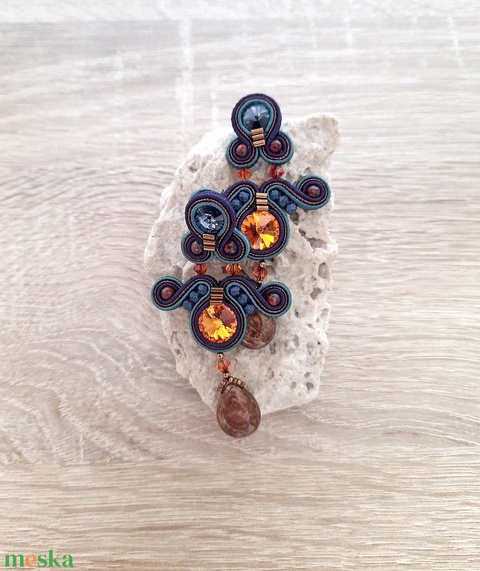 sújtás zsinór, swarovszki kristály, japán kása, cseh csiszolt gyöngy, ragasztó, cérna, nikkel mentes fémszerelék, cseh kaboson