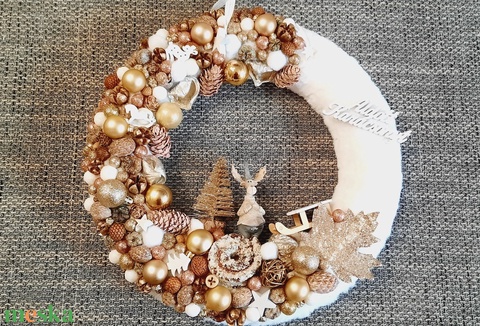 Karácsonyi ajtódísz arany,rózsaszín,fehér