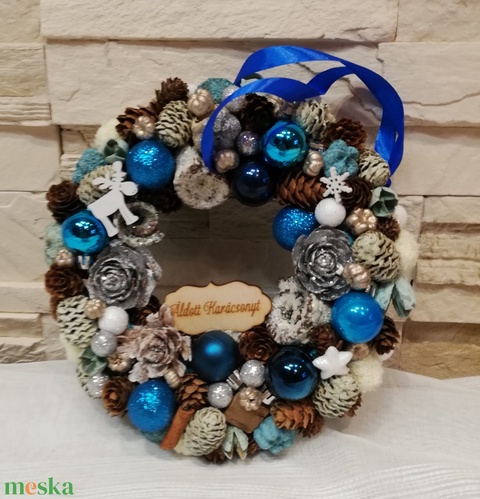 Karácsonyi ajtódísz kèk,ezüst
