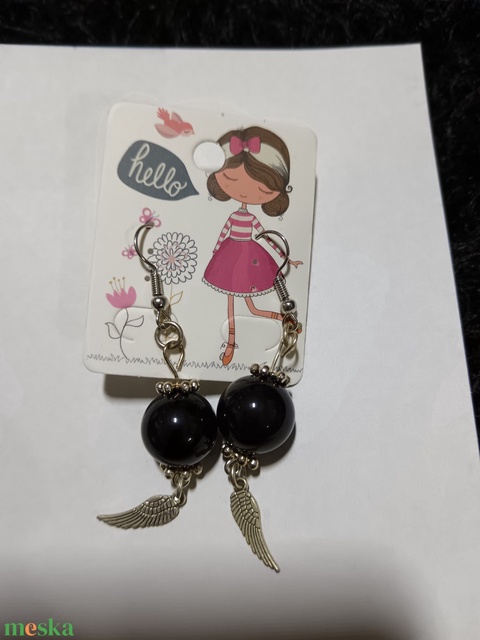 Fekete angyalszárnyas fülbevaló