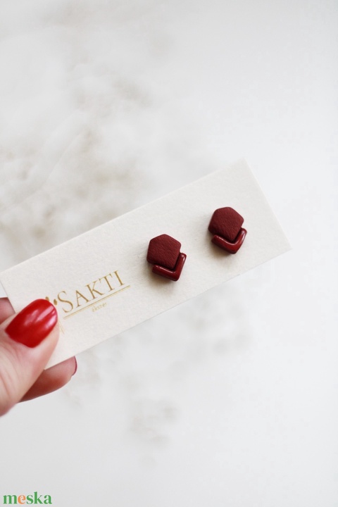 Bordó elegáns gomb fülbevaló, gomb fülbevaló