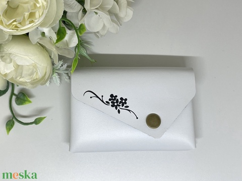 Valódi bőr zsebkendőtartó - hófehér - fekete virágmintával