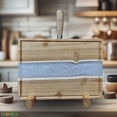 - Anyaga: élelmiszerbiztos epoxy gyanta, fa