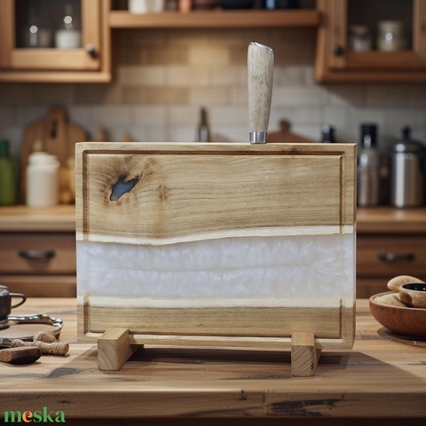 - Anyaga: élelmiszerbiztos epoxy gyanta, fa
