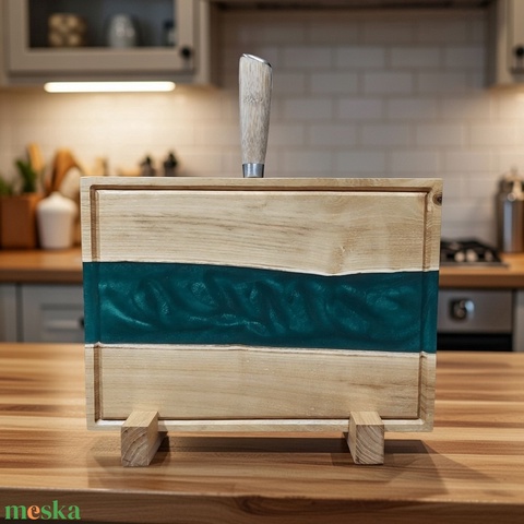 - Anyaga: élelmiszerbiztos epoxy gyanta, fa