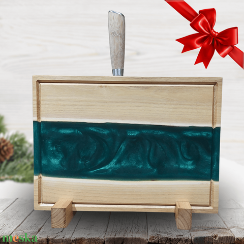 - Anyaga: élelmiszerbiztos epoxy gyanta, fa
