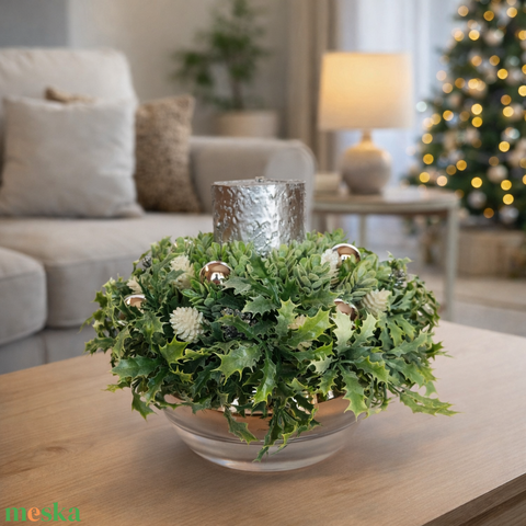 Ünnepi asztaldísz kerámia gömb kaspóban