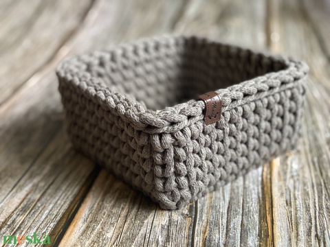 Horgolt kiskosár, tároló - mokka