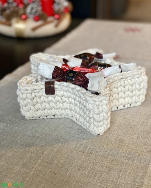 Karácsonyi, horgolt kosár - fehér