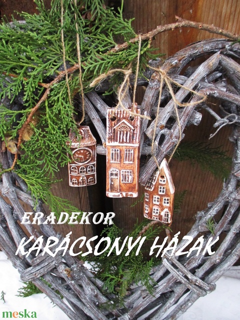 Rusztikus házak karácsonyfadíszek 16 db/szett