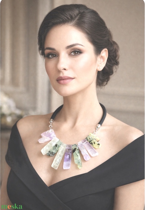 Lila, zöld, fekete ásvány nyaklánc
