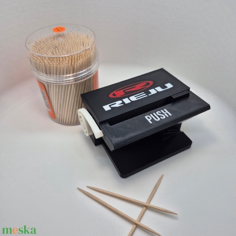 Praktikus, egyedi és látványos kiegészítő a konyhába vagy akár az irodába. Egyetlen nyomásra pontosan 1 darab fogpiszkálót ad ki, gyorsan és elakadás nélkül. Gyorsan feladom, FoxPost-tal legtöbb esetben egy napon belül. A csomag tartalma: 1 db fogpiszkáló adagoló 1 csomag hengeres fogpiszkáló Kompatibilitás: Normál, 2 mm vastag, 65 mm hosszú, hengeres fogpiszkálókkal működik (pl. Lidl, Aldi, Penny). Kapacitás: Kényelmesen ~150 db fogpiszkálót kezel a tartálya. Anyag: Tartós, erős műanyag, mindennapi használatra tervezve. Méret: Kb. 6 × 9 × 4,5 cm – kompakt, bárhol elfér. Szín- és logóváltozatok: Kérhető más színben, más márkával vagy akár 10 db felett teljesen egyedi, céges logóval is. Ajándéknak is tökéletes. Elérhető változatok autós: BMW, Mercedes, Audi, Volkswagen, Skoda, Volvo, Suzuki, Ford, Camaro, Fiat, Alfa Romeo, Toyota, Lexus, Subaru, Opel, Elérhető változatok motoros: KTM, Honda, Ducati, Yamaha, Suzuki, Kawasaki, Husqvarna, Harley Davidson, BMW, Rieju Termék ára: 2174,- Meska díj: 316,- Keresd a többi változatot a termékeim között! Minden terméket gondosan becsomagolva küldök. Érdeklődj üzenetben bátran!