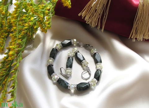 Kézzel készült Jáspis ásvány és Sárga Kristály Ékszerszett – Zöld Ásvány Karkötő és Fülbevaló