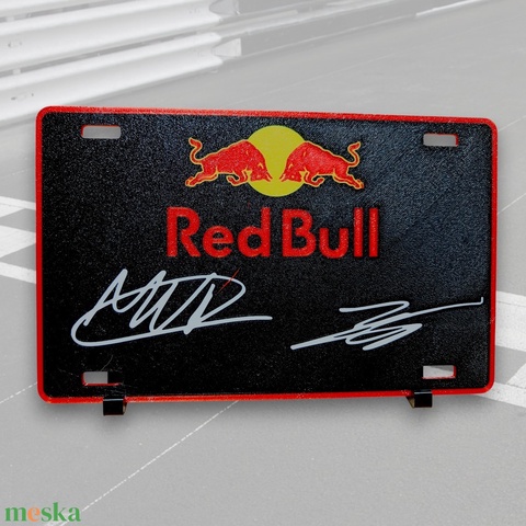 3D Nyomtatott Red Bull F1 Asztali Dísz – Max Verstappen és Sergio Pérez aláírásaival