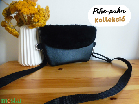 Fekete szőrmés övtáska
