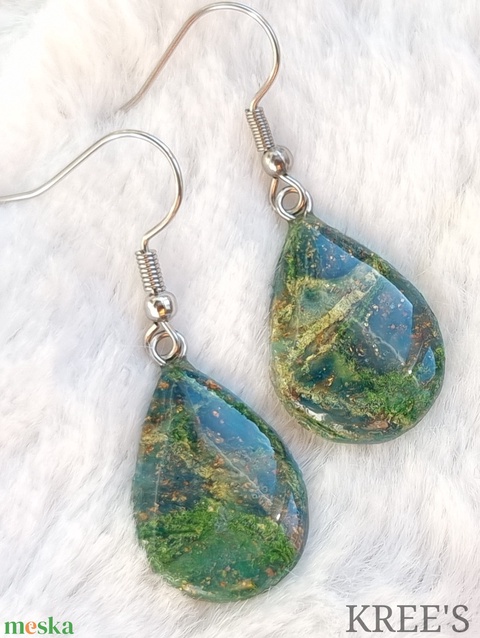Zöld-türkiz, üveghatású csepp fülbevaló