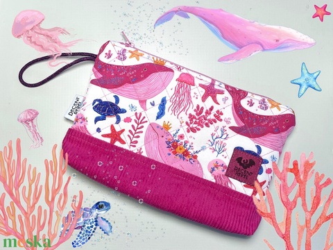 Rózsaszín, steppelt, bálnás pipere táska magenta korddal