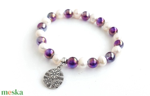 Lágy szellő - ametiszt aurakvarc, igazgyöngy ásványkarkötő
