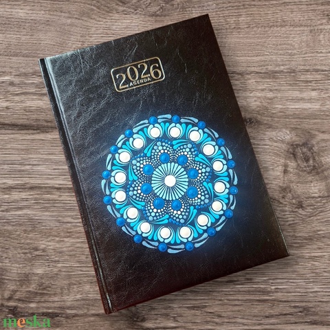 Pontozott mandalás határidőnapló, 2026-os, szürke, kék és ezüst mintával
