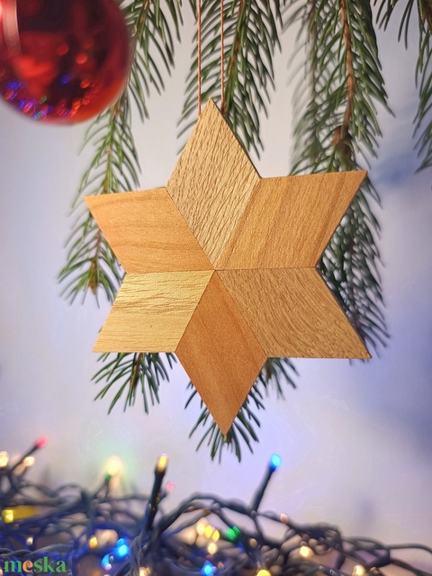 Csillag karácsonyfadísz cseresznye-és tölgyfából