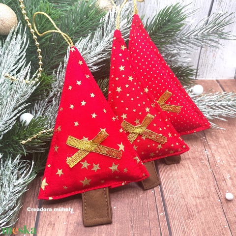 Karácsonyfa függő dísz, textil fenyőfa csomag piros 3 darabos