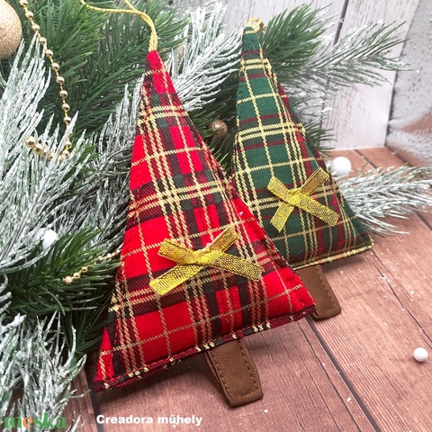 Karácsonyfa függő dísz, textil fenyőfa csomag piros-zöld 2 darabos