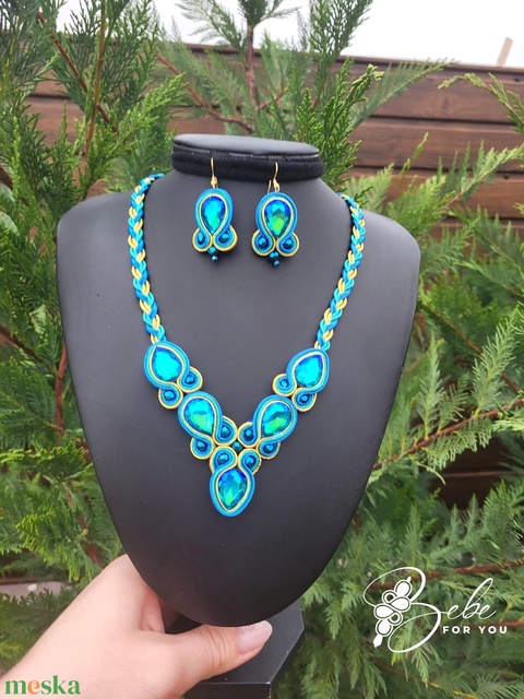 Páva színvilág classic kézműves sujtás fülbevaló és nyaklánc szett