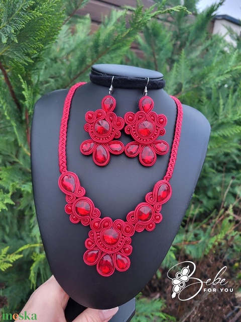 Bordó udvarhölgy éke kézműves sujtás fülbevaló és nyakék szett
