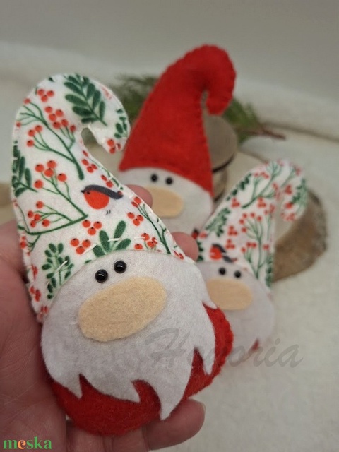 Karácsonyi manók - filc karácsonyfa dísz (3db)-madaras