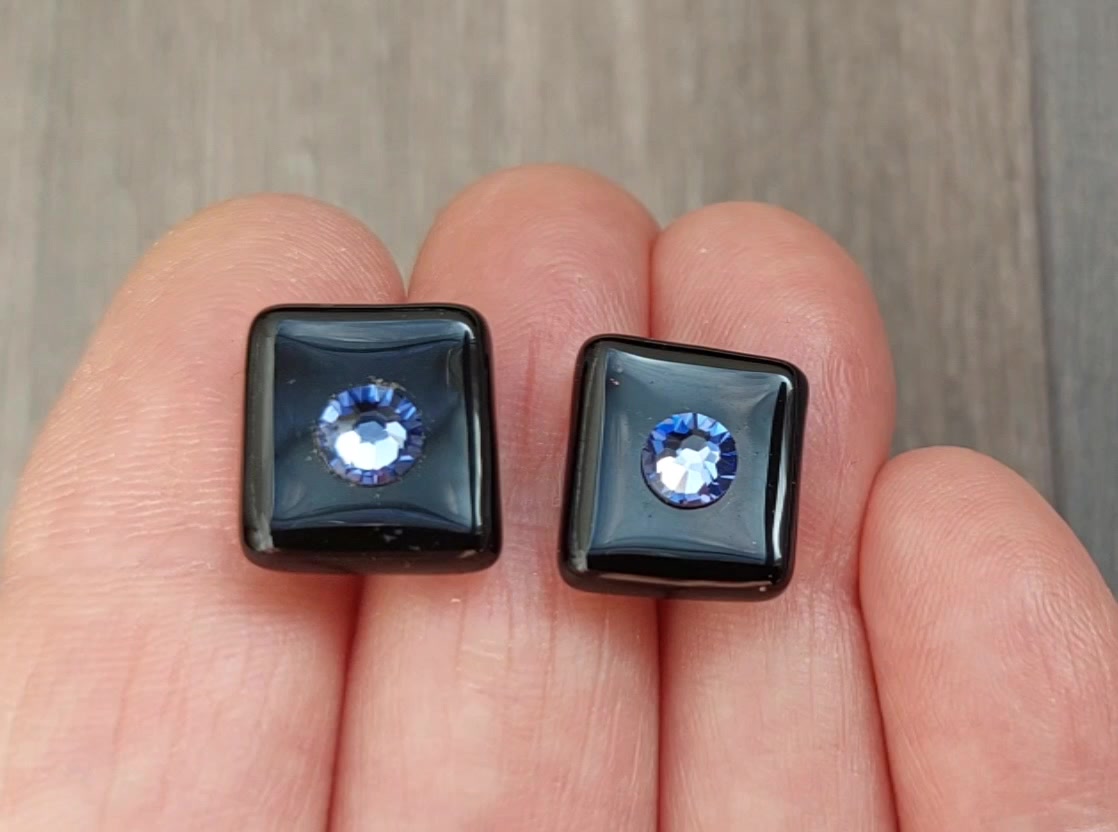 Fekete üveg fülbevaló lila swarovski kristállyal