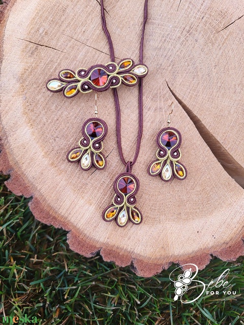 Aranyfahéj elegancia kézműves sujtás fülbevaló, nyaklánc és francia csat szett