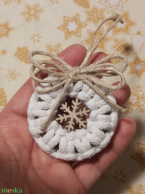 - Anyaga: makramé fonal, fa golyó, fa karika, fa dísz