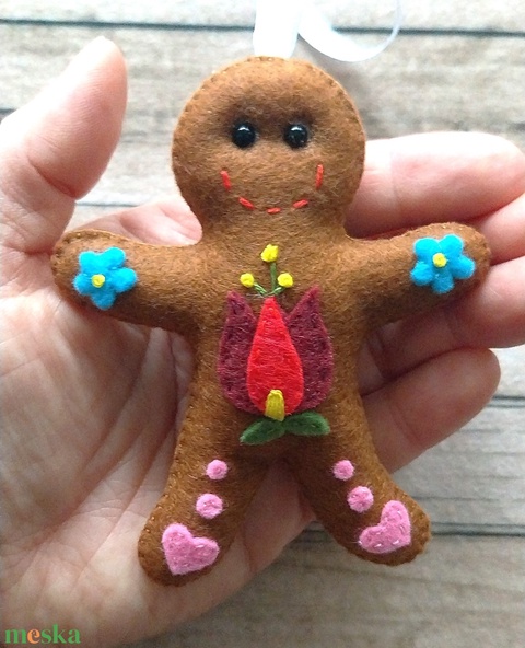 Kalocsai mintás filc Mézeskalács ember karácsonyfadísz