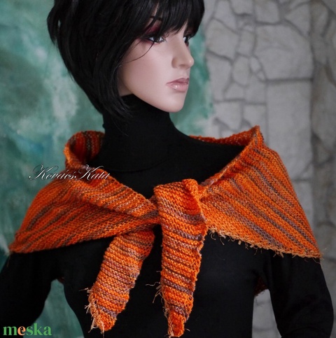 DELUXE SILK VÁLLKENDŐ - exkluzív kézzel kötött-festett selyem-jak- merinó kendő / orange KÉSZLETEN