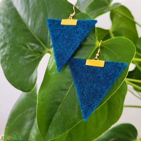Háromszög fülbevaló, petrolkék/sötéttürkiz