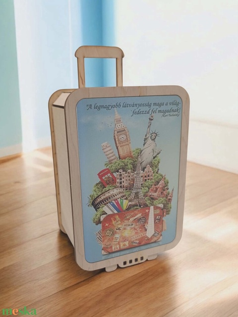 Fa bőrönd formájú persely – „Utazásra gyűjtök!” kiadás