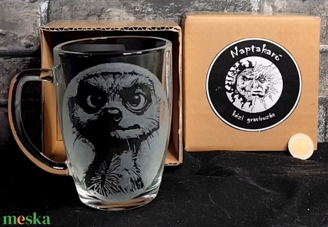 Szurikáta mintás üveg bögre