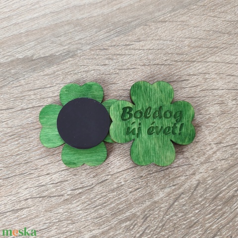 Szerencsehozó lóhere hűtőmágnes – “Boldog új évet!” felirattal