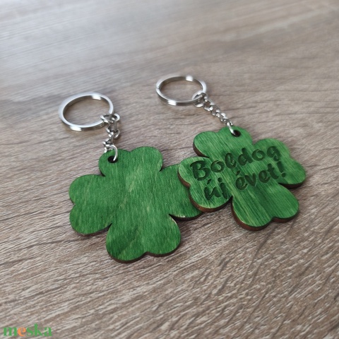Szerencsehozó lóhere kulcstartó – “Boldog új évet!” felirattal